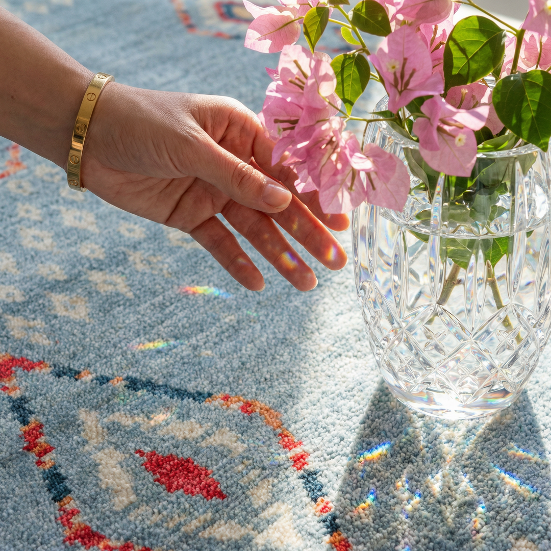 In your weekly cleaning routine, always prefer vacuum cleaners with low suction power. High-powered upright vacuums and stiff brushes can harm the natural structure of handwoven threads. To balance the reaction of natural threads to light and prevent regional tone differences (fading), we recommend changing the direction of your carpet every 2 to 6 months.