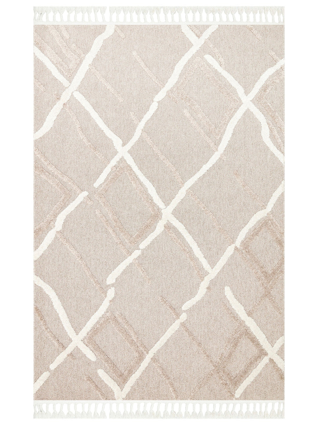 Tabasco Series Ethnic Patterned Living Room Hallway Modern Scandinavian Carpet TAB 03 BEIGE WHITE