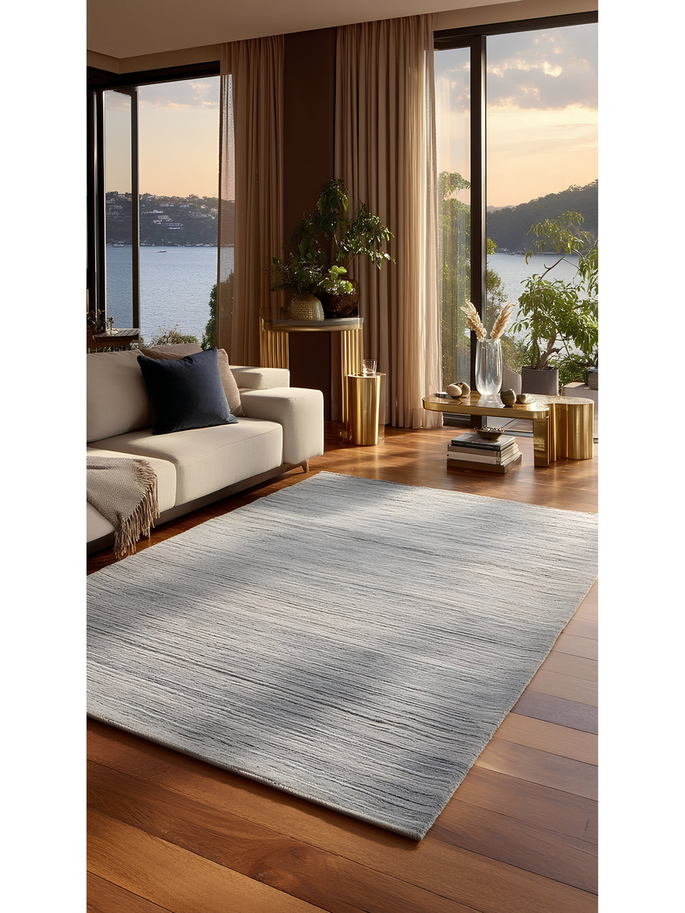 Amore Series 100% Natural Banana Silk Viscose and Wool Blend Living Room Handwoven Carpet GREY