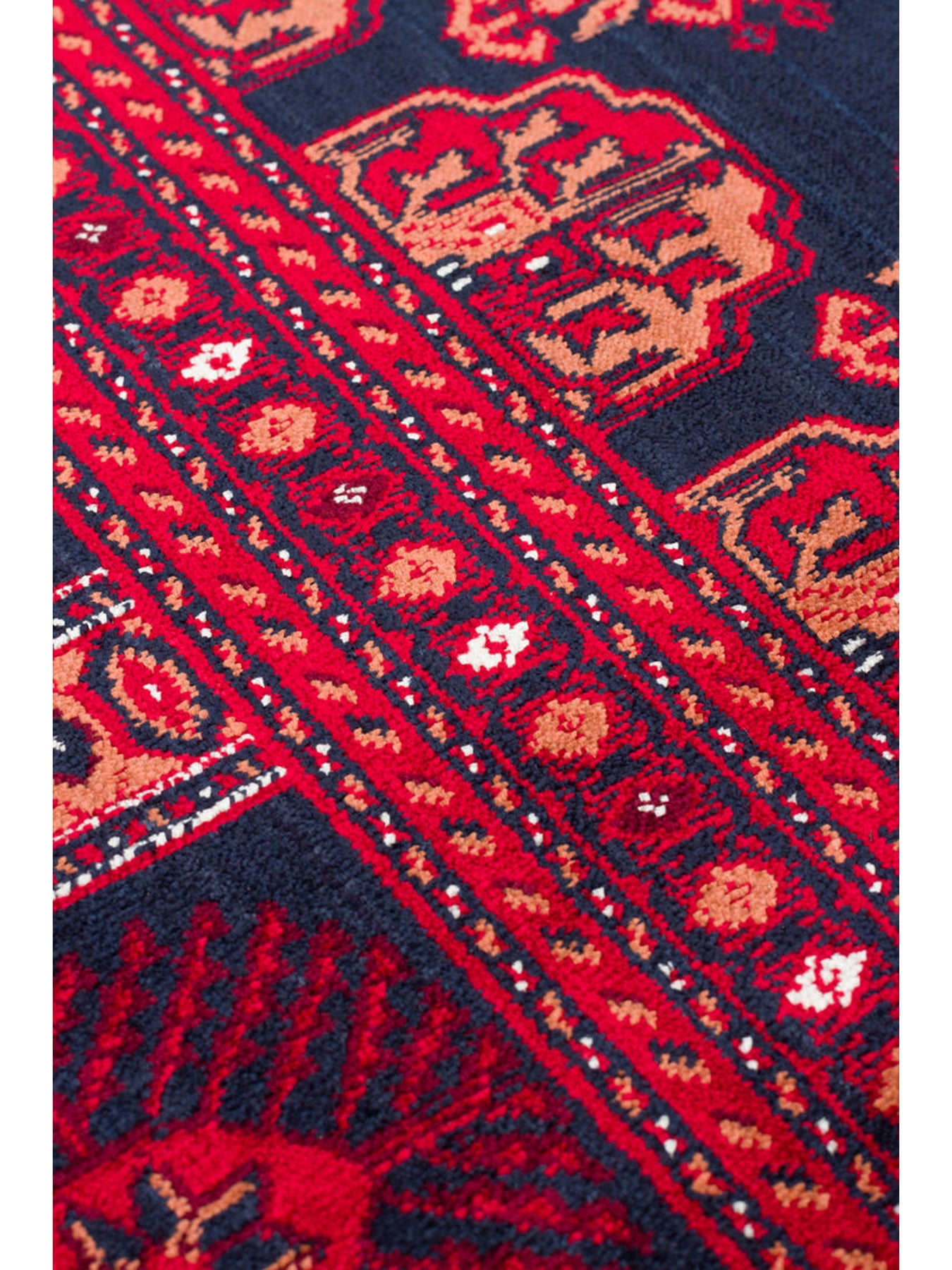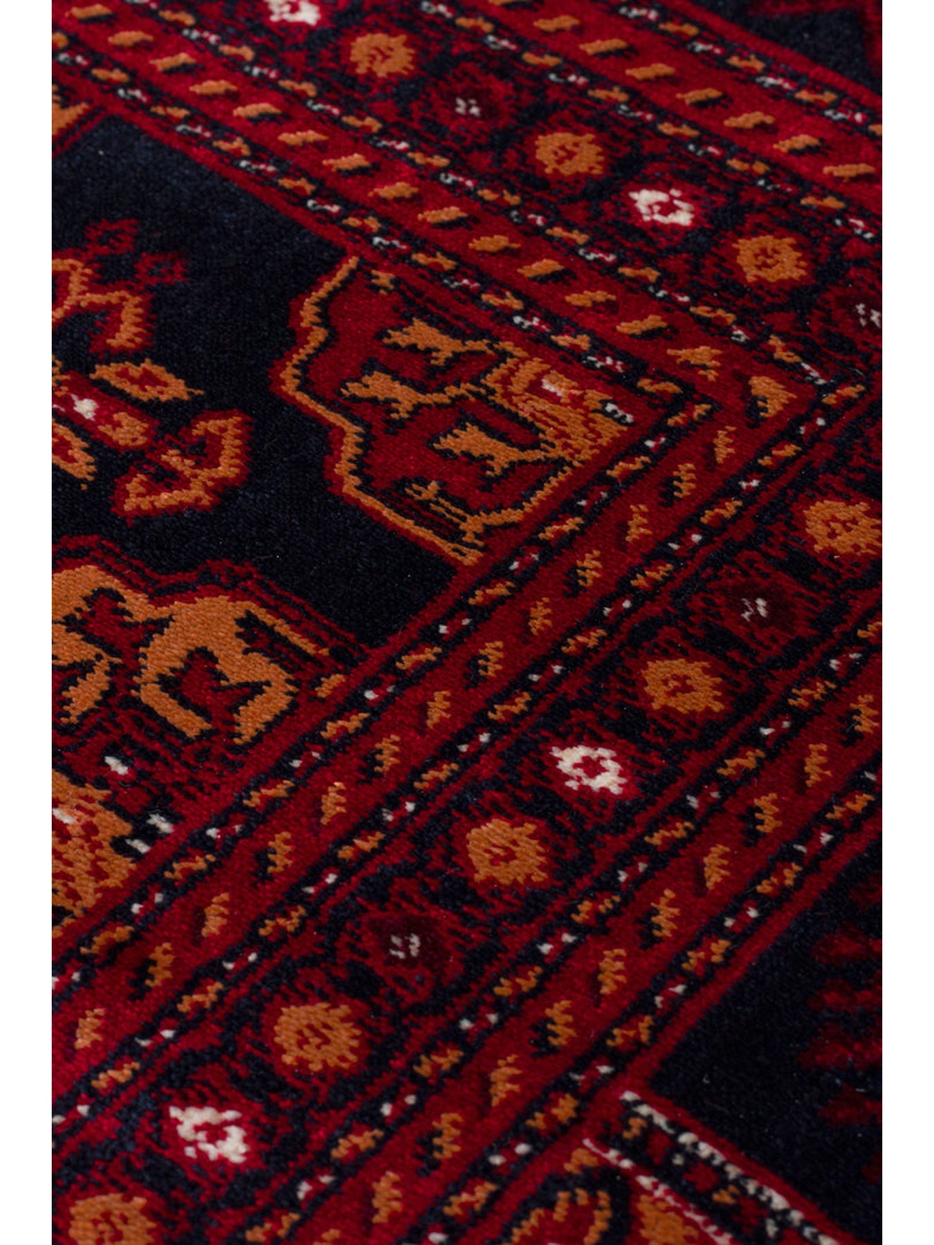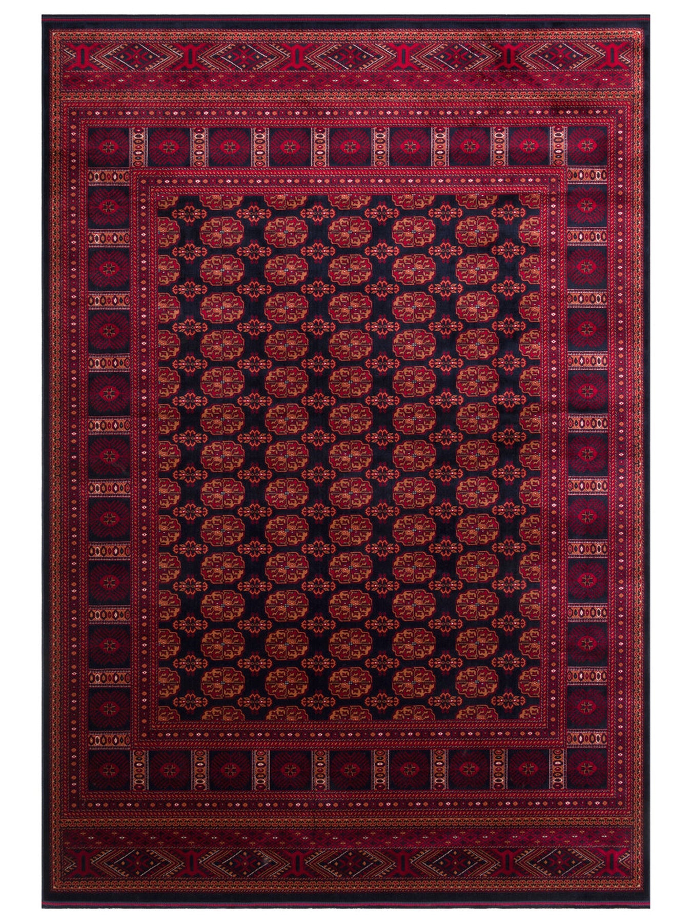 Paghman Series Afghan Patterned Viscose Dense Woven Non-Slip Based Thin Machine-Made Carpet 03 NAVY